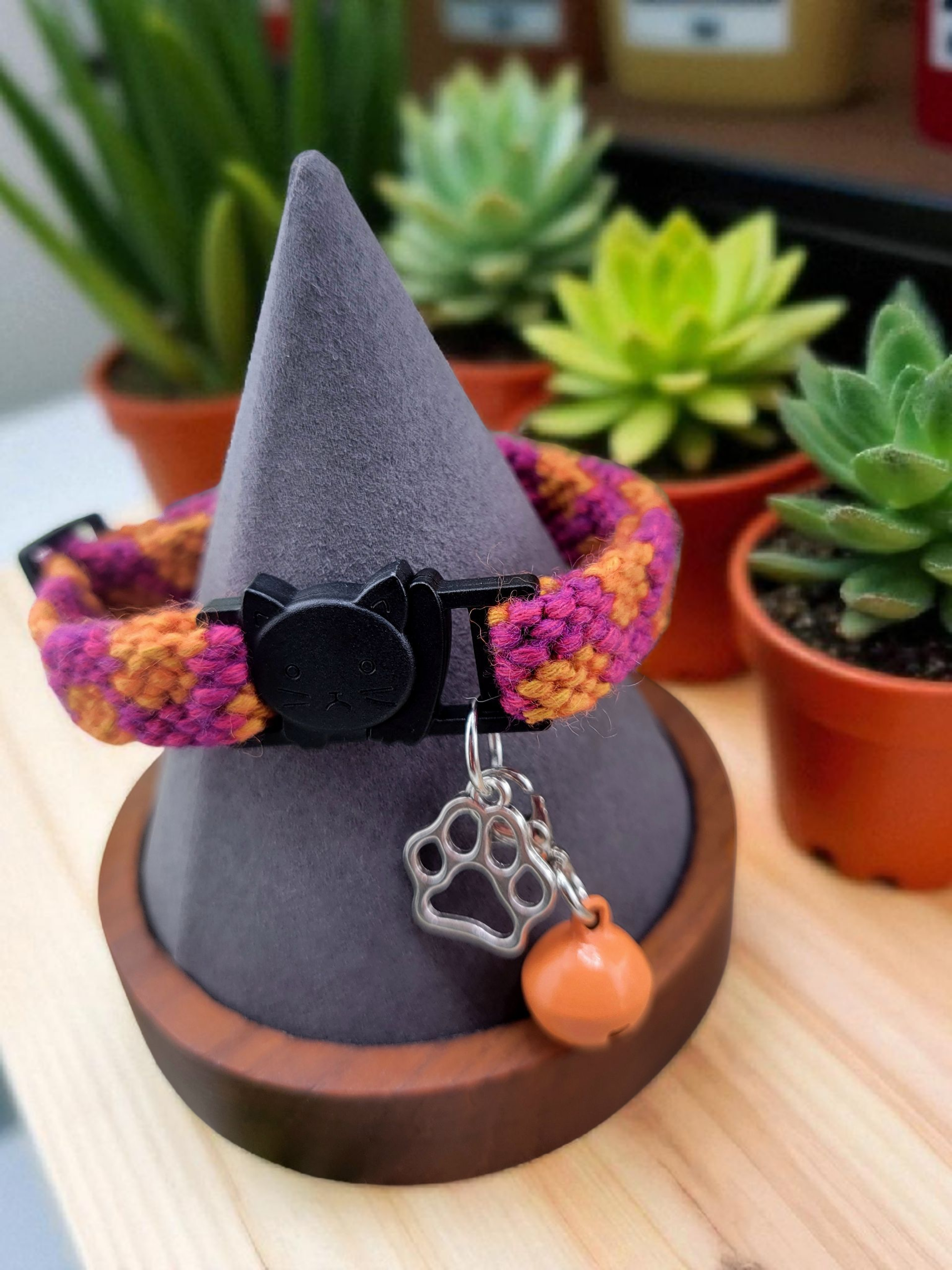 Adjustable handwoven cat collars from neck size 8" -12", width 0.5", good fit for XXS or XS dogs, lots of color variations