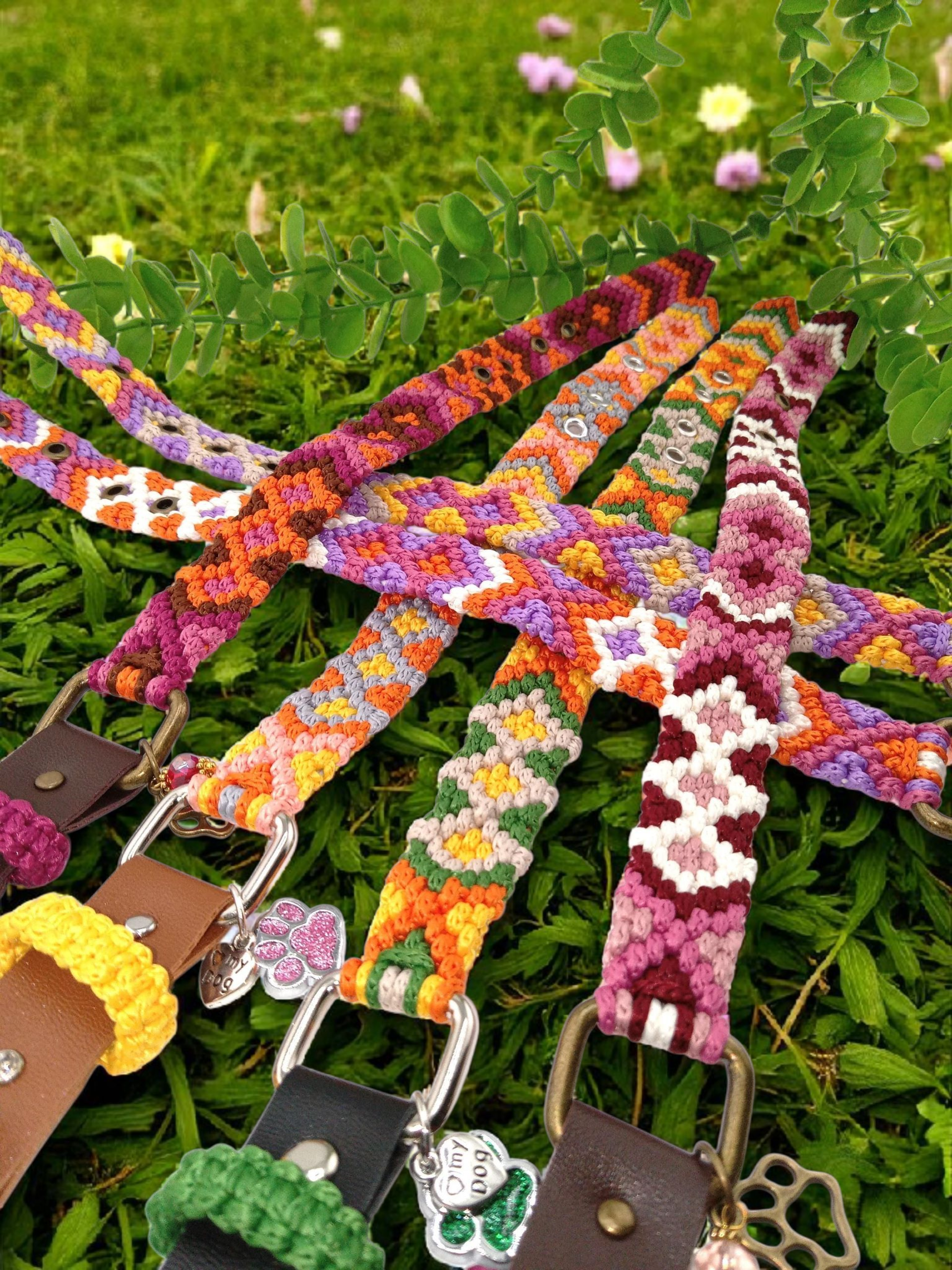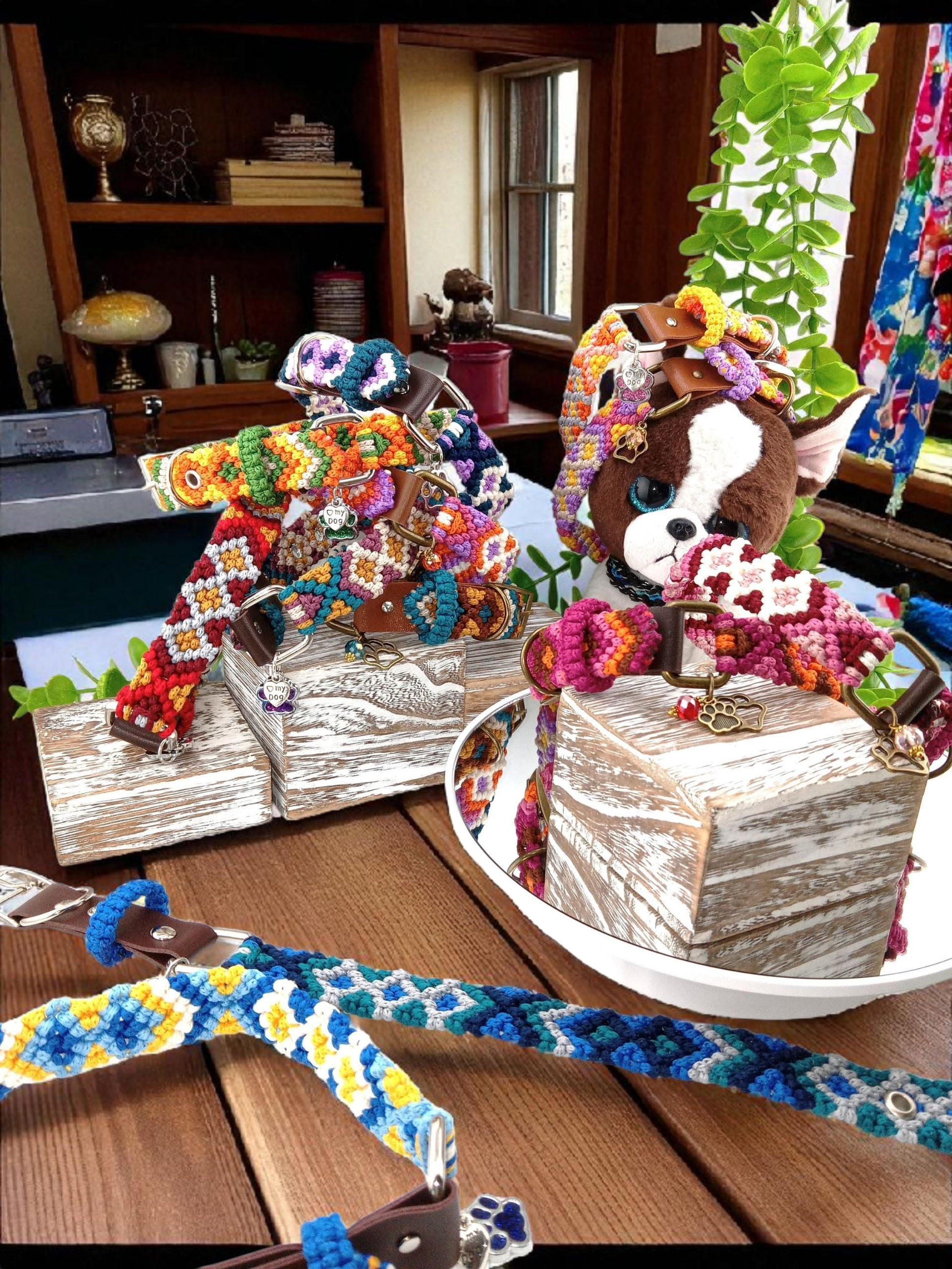 Designer Dog Collar, Unique Woven Dog Collar with Eco Leather, Ethnic Aztec design, Adjustable Small 12"-14" (30.5-35.5cm) neck size, Wide variety of colors Available